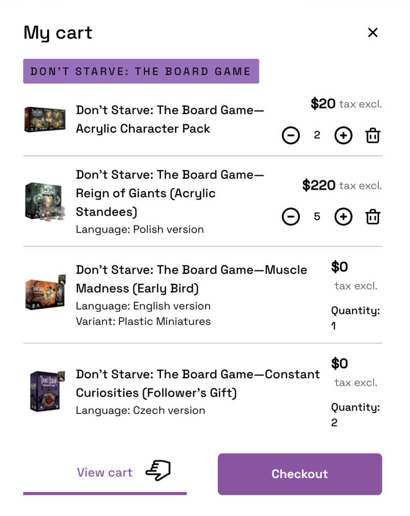 - We have added your Kickstarter pledged items to your cart. If you wish to upgrade your pledge, feel free to do so. You can add any available items to your pledge.