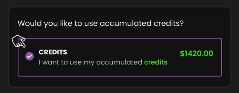 - During checkout make sure to click “I want to use accumulated credits” to have your Kickstarter amount deducted from your total: