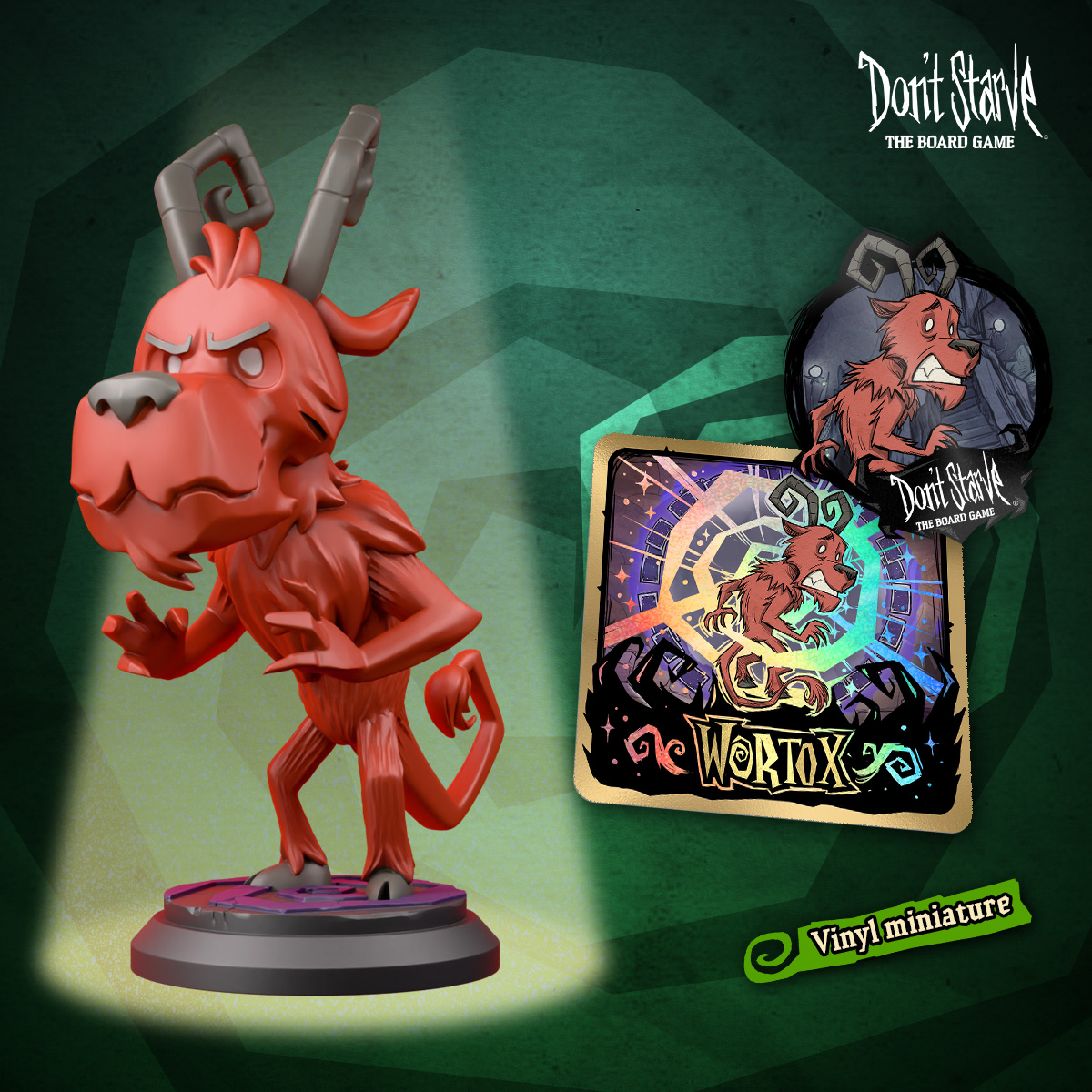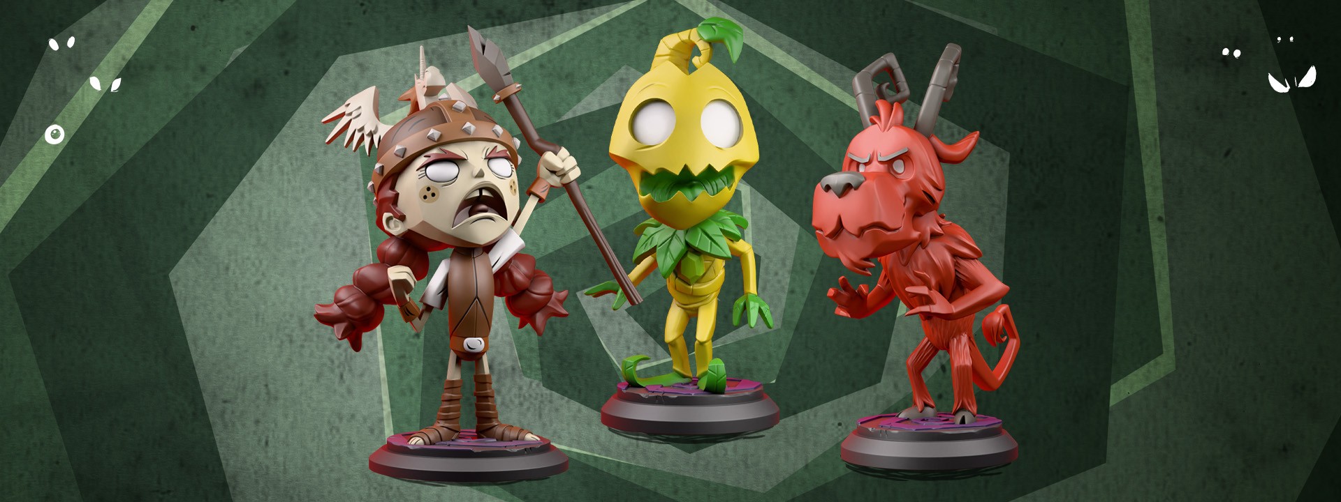 Big, bold, and bursting with color! This set includes painted vinyl miniatures for Wigfrid, Wortox, and Wormwood.