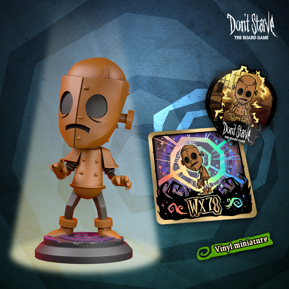 Struggle for sustenance in vivid color! Inside you'll find fully painted, oversized vinyl miniatures of WX-78, Winona, Woody and Wickerbottom, accompanied by their own holographic cards and memento stickers.