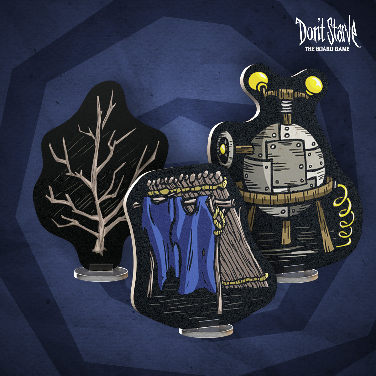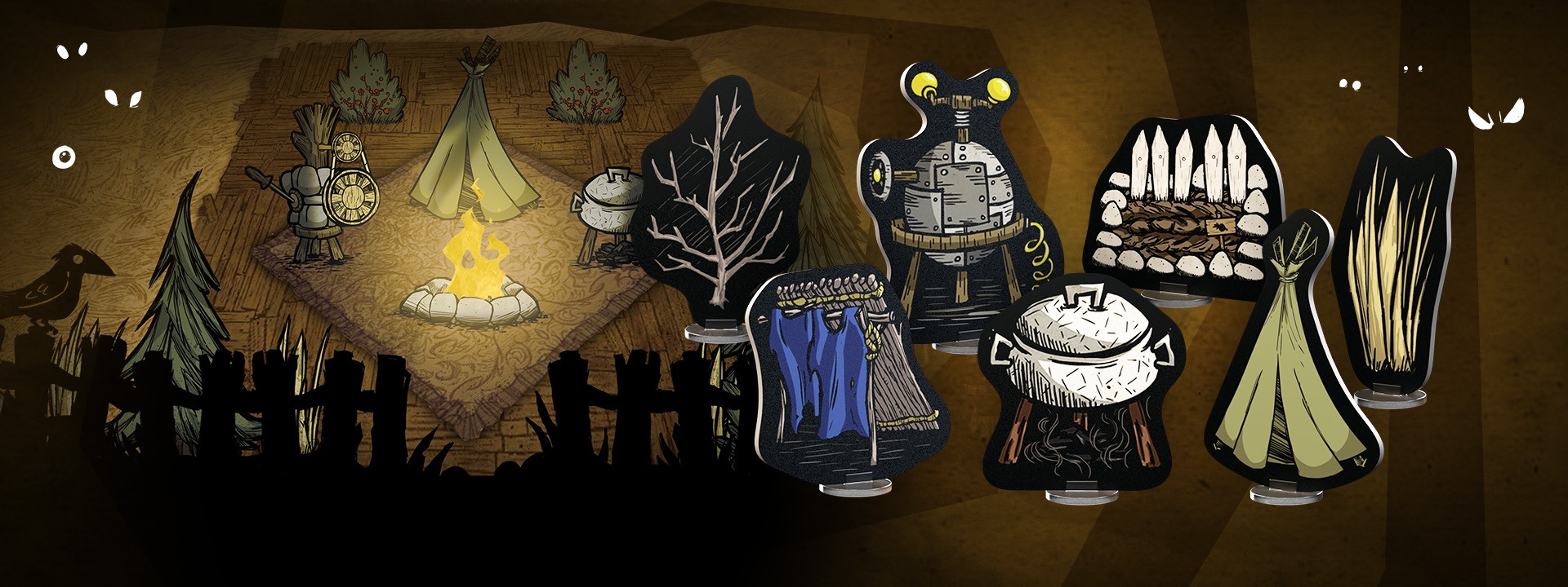 Bring your camp and the landscapes of Don't Starve: The Board Game to life with the Terrain Pack. This visual upgrade includes 2D cardboard standees for every structure from the core game, along with extra environment elements to scatter across your map-from the forest Pig House to the dryland Hound Mound-making your table feel more alive and immersive.